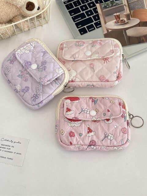 ดีลช็อป กระเป๋าใส่เหรียญผ้านวมลายดอกไม้การ์ตูนน่ารัก 3/ชิ้น คละสี