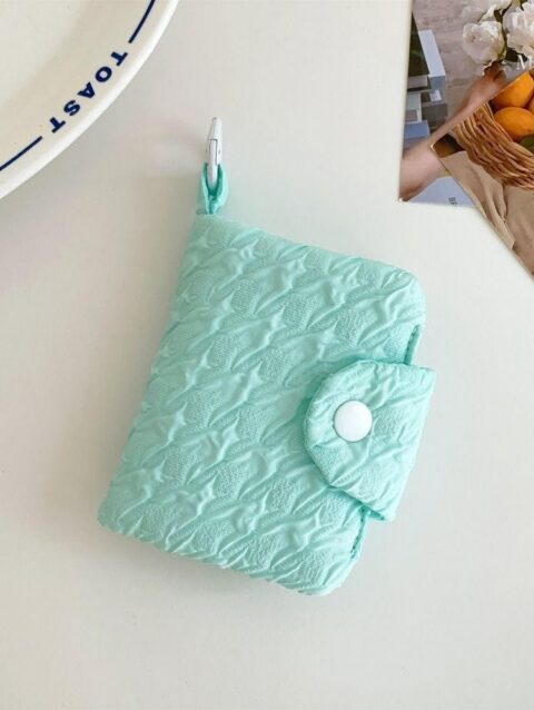 กระเป๋าสตางค์กระเป๋าใส่เหรียญความจุขนาดใหญ่ย่นน่ารักหลายชั้นกระเป๋าบัตรแพคเกจจี้มินิถุงเก็บ สีเขียวมิ้นท์