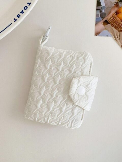 กระเป๋าสตางค์กระเป๋าใส่เหรียญความจุขนาดใหญ่ย่นน่ารักหลายชั้นกระเป๋าบัตรแพคเกจจี้มินิถุงเก็บ สีขาว