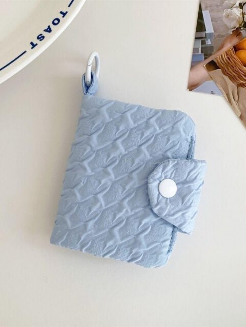 กระเป๋าสตางค์กระเป๋าใส่เหรียญความจุขนาดใหญ่ย่นน่ารักหลายชั้นกระเป๋าบัตรแพคเกจจี้มินิถุงเก็บ สีฟ้า