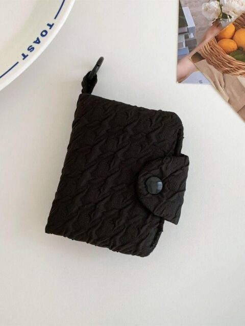 กระเป๋าสตางค์กระเป๋าใส่เหรียญความจุขนาดใหญ่ย่นน่ารักหลายชั้นกระเป๋าบัตรแพคเกจจี้มินิถุงเก็บ สีดำ